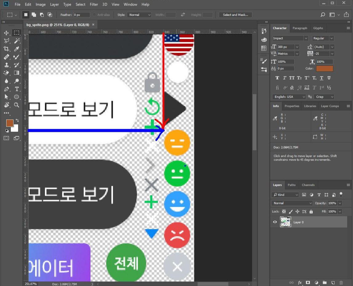 로고의 위치를 찾아 이미지의 (0,0) 좌표까지의 거리를 재서, 음수방향으로 보내서 로고의 이미지를 배경이미지가 들어갈 자리에 올라오도록 한다.