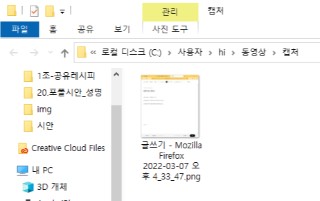 순서대로 모든 파일이 폴더(사용자>동영상>캡처폴더)에 모두 저장되어 있다.