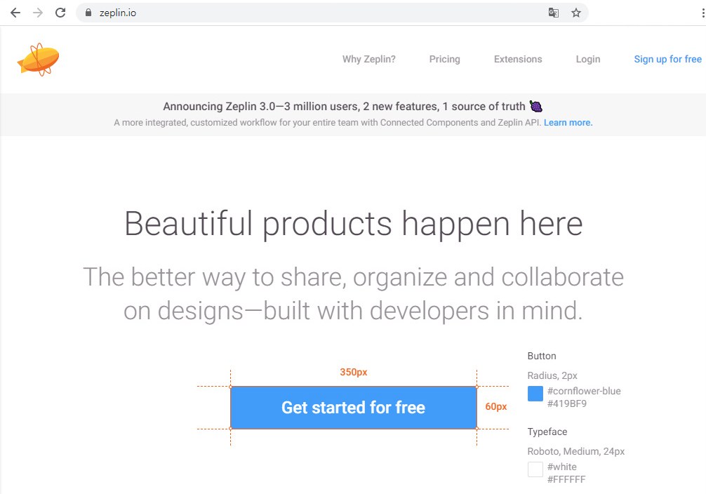 제플린의 장점은 디자이너가 제작한 화면의 모든 컴포넌트와 요소의 세부 값을 확인하는 데 상당히 효율적이다. 퍼블리셔나 개발자의 경우, 디자이너가 작업한 요소의 크기를 확인 하기 위해 탐색기에서 속성을 살펴본다든지, 포토샵과 같은 프로그램을 열어 확인해야 하는 번거로움이 있는데, 이러한 툴에 익숙하지 않은 개발자에게는 많은 도움을 준다.